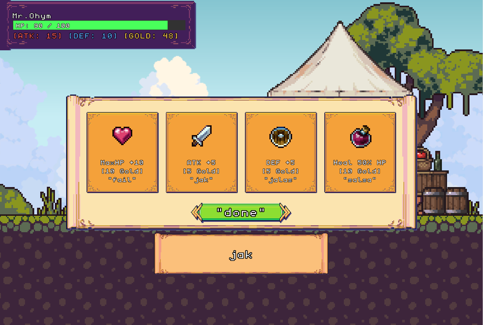 This is a typing game with little a RPG element. Player interact almost with anything just by typing the "word" and press Enter. Make your character stronger by upgrading along the way.